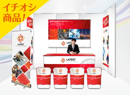 ※1 基本デザインコースでは、ツール4種類のデザインのバックイメージ、ロゴ、素材(写真)などが共通したデザインとなります。 ※2 ブース装飾 基本5点セットの各ツールについて、デザインを別々のテーマで作成の場合は、お電話でのお打合せ後、正式なお見積りをご提示いたします。 |