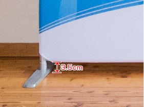 ベースプレートを取り付けると下に3.5cm程度のすき間があるので、印刷メディアが床に触れない構造になっています。汚れや擦れて傷むことが少ない分長くご利用いただけます。