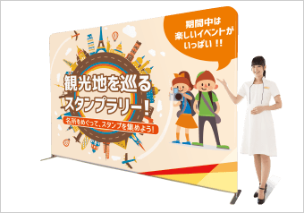 大きな会場に設置しても目立ちますので、イベントの装飾や集合写真の背景などにも使えます。