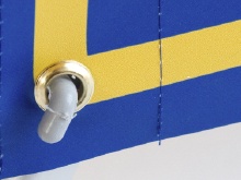 まず三脚部分を広げ、上部用の2本のバーを広げます。後ろの脚以外の各バーの先端付近に引っ掛ける部分がついていますので、メディアの四隅にあるハトメの穴に通して広げれば、しっかりとメディアが引っ張られた状態になります。